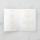 Dieses schlichte, elegante, gefaltete Hochzeitsprogramm ist perfekt für Ihre moderne, minimalistische Weiß- und Goldhochzeit. Das Design besticht durch minimalen zeitgenössischen Gold-Schriftart, begleitet von formaler Kalligraphie. Behalt es so, wie es ist, oder wählen Sie es mit Ihren eigenen Kunstwerken oder Fotos zu personalisieren!
