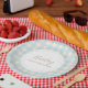 Einfaches, elegantes Gingham-kariertes Party Pappteller
