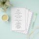 Einfache und dennoch elegante Budget-Hochzeitsprogramm-Flyer mit minimalem und sauberem Layout mit Ihrem Monogramm oben zusammen mit einer Grenze. Dieses klassische Schwarz-Weiß-Hochzeitsprogramm mit traditionellem Ambiente eignet sich hervorragend für eine feierliche Hochzeit. Diese Hochzeitsprogramme werden auf Papierbögen gedruckt, um eine preisgünstige Option zu erhalten.