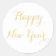 Einfache, elegante, benutzerdefinierte, weiße, schöne Imitate Gold-Script / Typografie / Kalligrafie "Happy New Year", klassische Rundaufkleber Blatt. Ein schöner Aufkleber perfekt für Ihre neuen Jahre Mailings in dieser Feriensaison.