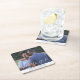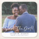 Ein moderner, moderner Untersetzer, um Ihnen ein Set zu verkünden. Der Untersetzer zeigt Ihr Lieblings-Foto mit Save the Date in handgeschriebener Typografie. Personalisieren Sie mit Ihren Namen, Hochzeitsdatum und Lage in einer modernen blauen Typografie.