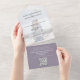 Dieses Design zeichnet sich durch einen modernen QR-Vellum-Foto-Code aus, mit einem durchsichtigen, übersichtlichen Bild-Overlay, mit uAwg via Website-Online-URL, einem Frühjahrsgärtnerbukett, einem lila Lavendel-Kalligraphie-Ampersand, einer botanischen Grödnereinladung, einem schlichten, sanften Romantik, einem eleganten Siegel und einer Einladung, einem kalligraphischen Set, einem dreiseiligen Budget für eine kalkliblasseitige Hochzige Gartenfeierliche Hochzeit aus.