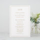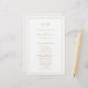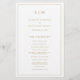 Einfaches Hochzeitsprogramm mit modernem und elegantem Design, oben mit zwei Buchstaben-Monogramm und Ihren Details, umgeben von einer dünnen Grenze. Der gesamte Text ist in Imitaten goldfarben auf weißem Hintergrund und kann im Designbearbeitungstool geändert werden. Die Vorderseite hat Ihre Reihenfolge der Zeremonie und der Hintern hat Ihre Hochzeitsfeier und danke Ihnen Nachricht. Ein elegantes und stilvolles Design, das sich ideal für ein minimalistisches Paar eignet. Diese billigen Hochzeitsprogramme werden auf Papierbögen gedruckt, um eine preisgünstige Option zu erhalten.