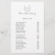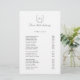 Klassisches Schwarz-Weiß-Preisliste-Blatt mit einfachem Layout mit dem Monogramm in einem Kranz / Wappen. Im Folgenden finden Sie Ihren Namen in einem eleganten Skript / Kalligrafie zusammen mit Ihrer Preisliste / Service-Menü. Der Rücken hat Ihre Arbeitsstunden, Ihre Kontaktinformationen, QR Code, Social Media Icons und Ihren Social Media Handling. Eine feminine und mädchenhafte Gestaltung für jede Art von Geschäft.