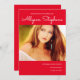 Einfache und klassische Rot-Abschluss-Ankündigung mit einem Single großen Foto vorne mit Ihrem Namen auf der Spitze und Schule und Klasse unten in weißem Text. Ideal für High School oder Uni-Abschlüsse.