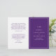 Einfach gefaltetes Hochzeitsprogramm mit modernem, aber elegantem Design mit Ihren beiden ersten Monogrammen und Ihren Details, umgeben von einem dünnen Rand auf der vorderen Abdeckung. Im Inneren befindet sich Ihre Hochzeitsfeier auf der links Seite und Ihre Zeremonie auf der rechten Seite. Alle Designelemente sind in königlich lila und weiß gehalten und können im Designbearbeitungstool geändert werden. Ein elegantes und stilvolles Design, das sich ideal für ein minimalistisches Paar eignet. Diese billigen Hochzeitsprogramme werden auf Papierbögen gedruckt, um eine preisgünstige Option zu erhalten.