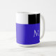 Diese farbenfrohe und dennoch schlichte Tasse mit minimalem Farbblockdesign weist ein helles Kobalt-Blau-, Schwarz- und Weißblockmuster auf, wobei das Monogramm zunächst in weißem Text beginnt. Es ist ein großartiges Geschenk oder Ergänzung zu Ihrer Tasse-Sammlung. Personalisieren Sie Ihre Wunschanfänge.