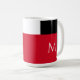 Diese farbenfrohe und dennoch schlichte Tasse mit ihrem minimalen Farbblockdesign weist ein rot-schwarz-weißes Blockmuster auf, wobei das Monogramm zunächst in weißem Text beginnt. Es ist ein großartiges Geschenk oder Ergänzung zu Ihrer Tasse-Sammlung. Personalisieren Sie Ihre Wunschanfänge.
