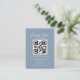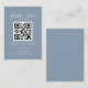 Moderne Skript elegante dusty Blue QR Code Hochzeit RSVP Karte. Sie können den Wortlaut, den Stil des Schriftartes, die Farbe und die Größe vor und hinter dieser botanisch staubblauen RSVP-Karte personalisieren. Matching-Elemente verfügbar.