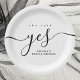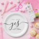 Mit diesen eleganten Schwarzweiß-Papier-Tellern stärken Sie Ihr Brautparty oder Ihre Verlobungsfeier. Mit dem stilvollen Satz "She Said Yes" in der modernen Schrift sind diese Teller perfekt geeignet, um jedem Fest eine Touch von Eleganz hinzuzufügen. Die schlichte und schlichte Gestaltung eignet sich ideal für Paare, die zeitlos und minimalistisch gestaltet sind und sich leicht mit jedem Thema verbinden. Diese Teller sind perfekt geeignet, um Speisen in Brautpartys, Polterabenden oder Verlobungsfeiern zu servieren. Sie bieten sowohl praktische als auch ästhetische Möglichkeiten. Personalisieren Sie sie für eine besondere Touch, um Ihre Veranstaltung noch unvergesslicher zu gestalten.