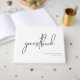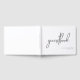 Dieses einfache Gästebuchdesign mit minimalistischer Anziehungskraft und modernem Stil besticht durch das Wort "Gästebuch" in edgy zeitgenössischer, handgeschriebener Schrift. Die Namen der Braut und des Bräutigams sowie das Hochzeitstermin sind in einer einfachen Textvorlage enthalten, die Sie mit Ihren Daten personalisieren können. Die Vorlage enthält auch Text auf der Wirbelsäule des Gästebuches, den Sie nach Belieben personalisieren können. Das Aussehen ist schick mit einem angenehmen Flair.