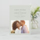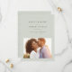 Mit geschmackvoll moderner, aber schlichter Typografie ist dieses Foto Save the Date der perfekte Weg, um Ihre Verlobung und kommende Hochzeit bekannt zu geben. Die klassische hellgrüne Farbe arbeitet mit jedem Hochzeitsstil von formell bis lässig. Der Rücken weist einen einfachen Streifen auf. Die Farbe kann geändert werden, indem Sie auf "Weitere Anpassung" klicken.