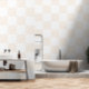 Diese schale und klebige Tapete hat ein gewagtes und grafisches Muster von Schachbrettplätzen in reinem Weiß und einer blasscreme. Die Farbkombination ist frisch und auf dem Trend und bringt Leben in Ihren Raum ohne Farbe, was es zu einer idealen Wahl für Mieter und diejenigen, die nicht die Geduld haben, ein Muster zu maskieren und zu malen auf ihre eigene oder die Verpflichtung phobischen Innenarchitekten.