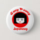Ein Retro Slogan, ein Kabuki stellen und ein Niedlich-wie-einknopf Knopf gegenüber.