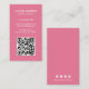 Moderne vertikale Visitenkarte mit einem einfachen und minimalistischen Stil mit QR Code auf der Vorderseite und Social Media Icons auf der Rückseite. Alle Gestaltungselemente sind in Weiß auf einem gürtelrosa Hintergrund gehalten. Ein schlichtes und minimales Design, das für jedes Unternehmen beruflich angepasst werden kann.