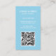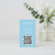 Moderne vertikale Visitenkarte mit einem einfachen und minimalistischen Stil mit QR Code auf der Vorderseite und Social Media Icons auf der Rückseite. Alle Gestaltungselemente sind weiß auf einem hellblauen Hintergrund. Ein schlichtes und minimales Design, das für jedes Unternehmen beruflich angepasst werden kann.