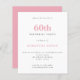 Einfache Textblush Rosa 60. Geburtstagseinladung. Ein Preis-Leistungs-Verhältnis kleiner 4,5 x 5,6 Zoll Alternative standardmäßig zur halb Glanz Option, die für Einladungen empfohlen wird und eine ähnliche Dicke wie eine Postkarte hat. Die Satin-Option ist viel dünneres Papier. Die Farbe und der Typ des Schriftartes können über das Menü Bearbeiten geändert werden. Sie können auch Text- und Hintergrundfarben auf beiden Seiten ändern, wenn Sie möchten.