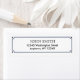 Ein einfaches, anpassbares Rücksendelabel auf weißem Hintergrund mit schwarz-blauem Mansardenrand.