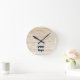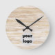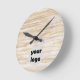 Einfaches rustikales Beige Holz mit Logo Runde Wanduhr