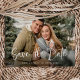 Diese einfache und stilvolle Hochzeit speichern Sie die Dattelkarte mit Ihrem bevorzugten persönlichen Foto auf der Vorderseite, mit rustikalen, weißen handgeschriebenen Skript. Die Rückseite der Karte hat Platz für ein anderes Foto, plus Platz für weitere Informationen zur Hochzeit. Ein elegantes Design, das die perfekte Art ist, Familie und Freunde von Ihrer bevorstehenden Hochzeit zu informieren!