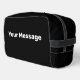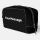 Sie können Ihre eigene Nachricht in weißem Text auf diesem schwarzen Dopp-Kit erstellen.