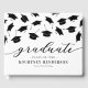 Modernes Gästebuch mit einem einfachen, weißen Hintergrund, der in jede Farbe verändert werden kann, fallenden schwarzen Mörtel-Kaps und einer modernen Textvorlage, die leicht zu personalisieren ist.