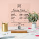 Un script noir qui ouvre les heures de bureau signe acrylique avec logo d'entreprise, QR Code, vos icônes de médias sociaux personnalisées et les coordonnées. Un magasin personnalisé heures clair signe acrylique parfait pour les tablettes de magasin. Parfait pour un propriétaire de boutique d'affaires qui souhaite informer ses clients de ses horaires d'ouverture.