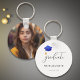 Einfache Skript High School Absolvent Foto Schlüsselanhänger perfekt als Gedenk zu halten oder Gunst Geschenke für ihren Abschluss. Personalisieren Sie es mit Ihrem Foto und ändern Sie den Text mit dem Namen des Absolventen, High School oder Uni und Klasse. Illustriert und entworfen von Patricia Alvarez.