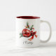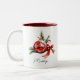 Niedliche Weihnachtszeit-Tasse mit einfachem Skriptvornamen und einem Aquarellwein Weihnachtsschmuck mit Kiefer und Schnee.
