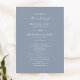 Einfaches Solid Dusty Blue Hochzeitsprogramm. Diese moderne Minimal Order of Services Card ist schlicht klassisch und elegant mit schlichter Hintergrundfarbe und einem hübschen Schriftart mit Schwänzen in der Schriftzeichen-Kalligraphie. Im neuen Farbraum gezeigt. Erhältlich in mehreren Farboptionen, oder fühlen Sie sich frei, die Farben aus dem Editor zu bearbeiten (klicken Sie weiter anpassen während der Personalisierung). Um mehr zu sehen, suchen Sie nach Chic Paperie's Hochzeitskollektionen 2022, um alle über Trend Designs und Hochzeitsfarben für dieses Jahr zu sehen.