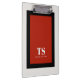 Dieses markante Clipboard-Design hat klassische Gestaltungselemente eines fett kontrastierenden, geometrischen rechteckigen Rahmens in farbig rot und schwarz über einem weißlichen Hintergrund. Eine Textvorlage ist mit Monogramm-Initialen und Namen enthalten, um nach Belieben personalisieren zu können. Dieses Design ist stilvoll und raffiniert, aber einfach und modern mit geschlechtsneutralem Anklang. Es ist eine großartige Wahl für den Rückweg zur Schule, Zuhause oder ins Büro.