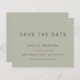 Einfache Textseite weich grün Save the Date. Ein Preis SMALLER 4,5" x 5,6" Alternative. Erhältlich in einem SEMI-GLOSS 110 lb CARD STOCK, der die Standardoption (dicker für Einladungen) ist, ODER einem SATIN FINISH 80 lb THINNER PAPER STOCK (ideal für Gehäuse). Umschläge sind optional und etwas größer als die Kartengröße. Einfache Eleganz mit Save the Date in einem modernen Set-Skript.Die Erholung des Textes können Sie leicht personalisieren.Hier in schwarz auf Weich-Weiß-Weiß dargestellt, aber die Text- und Hintergrundfarben können geändert werden, wenn Sie über die weitere Option anpassen möchten.