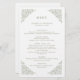 Elegantes Hochzeitsmenü mit minimalistischem Design und einer zarten Blumengrenze, die sich perfekt für feierliche Hochzeiten eignet. Die klassische Typografie und der anpassbare Text machen ihn zu einer zeitlosen Wahl für Paare, die eine raffinierte, personalisierte Hochzeitsarbeit suchen. Für die Anpassung oder weitere Produkte mit diesem Design, bitte kontaktieren Sie mich.