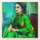 Ein von der KI generiertes Portrait einer introspektiven Frau in einem grünen Kleid