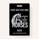 Der Verkaufsrepräsentant des Abzeichens ist der Name des sonnigen Pferdehops. Geschäft mit Pferdezubehör Vorgestellt, aber bereit zu diskutieren Pferde lustige Pferdedesign in Schwarz-Weiß mit Vektorpferd Grafik.