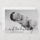 Die Einführung von Script Custom Foto Collage Announcement ist eine sehr moderne und coole Möglichkeit, um die neue Ergänzung Ihrer Familie. Es ist sowohl für Mädchen als auch für Jungen geeignet. Die Vorderseite ist mit einem großen Foto mit der Einführung des Textes in der schwarzen Schrift und der Baby-Name-Vorlage. Der Rücken ist eine Foto-Collage von 4 Fotos und Geburtsstatistiken und Willkommenstext.