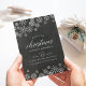 Elegante Weihnachtsessen- oder Feiertagseinladungen bieten eine obere und untere Grenze fallender Schneeflocken auf einem Chalkboard-Hintergrund. Personalisieren Sie Ihre Weihnachtsfeierdetails (mit "Weihnachtsessen und Merriment" gezeigt) in weißer Schrift.