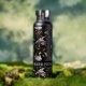 Personalisieren Sie diese Wasserflasche mit Ihrem eigenen Namen. Wasserfarbenmuster von Enten, Gänsen und Kaninchen unter großen Schilfpflanzen und Botanicalen in Herbstfarben. Perfekt für den Jäger!