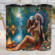Eine ruhige amerikanische Indianerin, die in einem großen, gefederten Kopfteil und einem aufwändigen Schmuck verziert ist, sitzt anmutig an einem reflektierenden See. Ein Glatzenadler sitzt auf ihrer Schulter, während sich verschiedene Waldtiere wie Katzen und Vögel um sie und in den Bäumen verbergen. Ein glühendes Lagerfeuer, weit entfernte Wasserfälle und Vollmond runden diese ruhige und mystische Waldlandschaft ab.