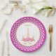 Einhorn, Blume, goldene Konfetti auf weiß & violett Kronchakra mandala Hintergrund Papierplatte. Princess-Text kann personalisiert sein. Das Kronchakra ist für höheres Bewusstsein oder Empathie mit allen Lebewesen. Gut für Kinder und Erwachsene!