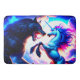 Diese Badmatte hat ein Einhorn, das einen Warewolf bekämpft, der darauf abgebildet ist.