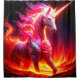 Dieser Duschvorhang hat ein Einhorn darauf.