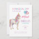 Sanfte Pastellfarben und traumhafte Details machen diese Einladung perfekt für eine magische Einhorn-Feier.
