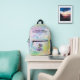 Der farbenfrohe Drache ist umgeben von Regenbogensprinklen, die vom Himmel fallen. Seine Körperfärbung passt zu den Sprinklen, sodass er überzeugt ist, dass er ein Einhorn in Verkleidung ist. Schöne mehrfarbige Wolken sind im Hintergrund. Es ist der perfekte Rucksack für jüngere Kinder, die Fantasien und mythische Geschichten mögen.