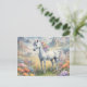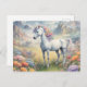Eine Postkarte, die ein traumhaftes Bild eines weißen Einhorns mit einem Regenbogenmane zeigt, der in einem Feld von Blume stehend ist. Im Hintergrund sind majestätische Berge. Das perfekte Geschenk für diejenigen, die Liebe magische und mystische Einhörner. Enthält generativen Inhalt.
