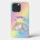 Dieses niedliche und farbenfrohe Handy-Gehäuse zeichnet sich durch eine wunderschöne Abbildung eines einfarbigen und pastellfarbenen Regenbogens über einem Hintergrund mit Regenbogengradienten aus. Imitate Gold Glitzer betont den oberen und unteren Bereich. Kleine Sterne in passenden Farben umgeben den Regenbogen. Über dem Einhorn wird ein Banner mit einem Beispielnamen gedruckt, der unten in einem eleganten lila Script-Schriftart gedruckt wird. Sie können die Telefonzelle individuell anpassen, um Ihren eigenen individuelle Name oder Text einzubinden.