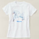 Weißes Regal Einhorngallops mit fliegendem Mist und Schwanz. Das Regenbogenhorn sagt Einhörnchen, vorne blau und ich traue mich, an den Rücken zu glauben.