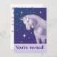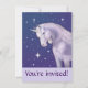 Hübsches Einhorn inmitten eines blauen Sternenhimmels lädt zu einer Geburtstagsfeier ein.