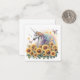 Fantasy Art Card. Schönes Einhorn inmitten der Sonnenblumen. Diese Karte ist leer für Ihre eigene Nachricht.