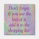 Dieser nützliche und farbenfrohe Magnet lautet: "Vergessen Sie nicht: Wenn Sie den letzten Magnet verwenden, fügen Sie ihn der Einkaufsliste hinzu